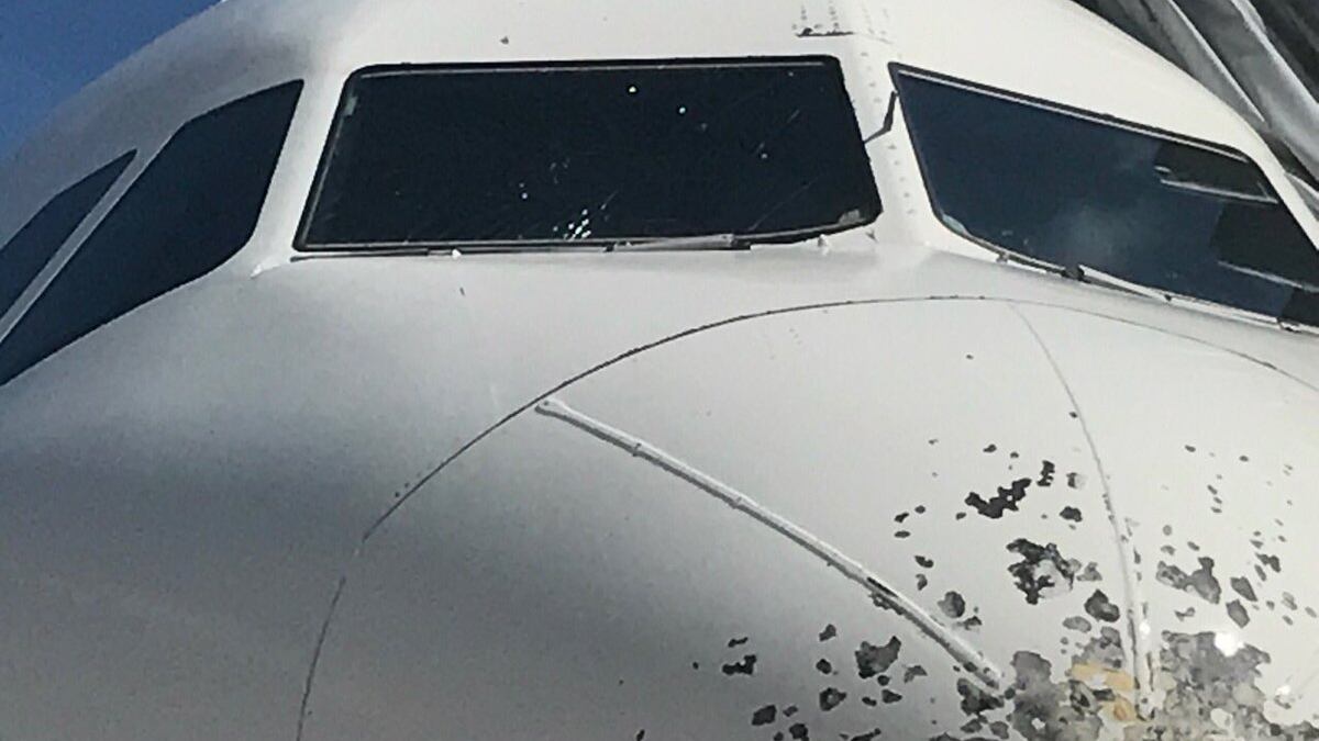 The Daytona Beach International Airport said the hail damaged the plane's windshield and nosecone.