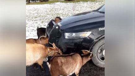 Earlier today Webster Police were dispatched to a reported goat in the roadway. Shortly after, police located the goat in question along with 7 of his friends that had escaped their enclosure. The goats quickly closed in on the officer and then began licking the salt off the police car. The goats were rounded up and directed back into their enclosure.