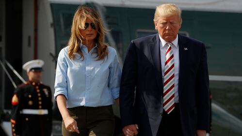 President Donald Trump and first lady Melania Trump walk towards the media before speaking in Morristown, N.J., Sunday, Aug. 4, 2019. The president said he'll make a statement on the shootings in Dayton, Ohio andEl Paso, Texas, Monday morning.