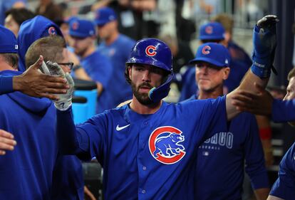Chicago Cubs v Atlanta Braves ATLANTA, GEORGIA - SEPTEMBER 26: Dansby Swanson #7 of the Chicago Cubs reacts after scoring on a RBI single by Miles Mastrobuoni #20 in the second inning at Truist Park on September 26, 2023 in Atlanta, Georgia. (Photo by Kevin C. Cox/Getty Images) (Kevin C. Cox/Getty Images)