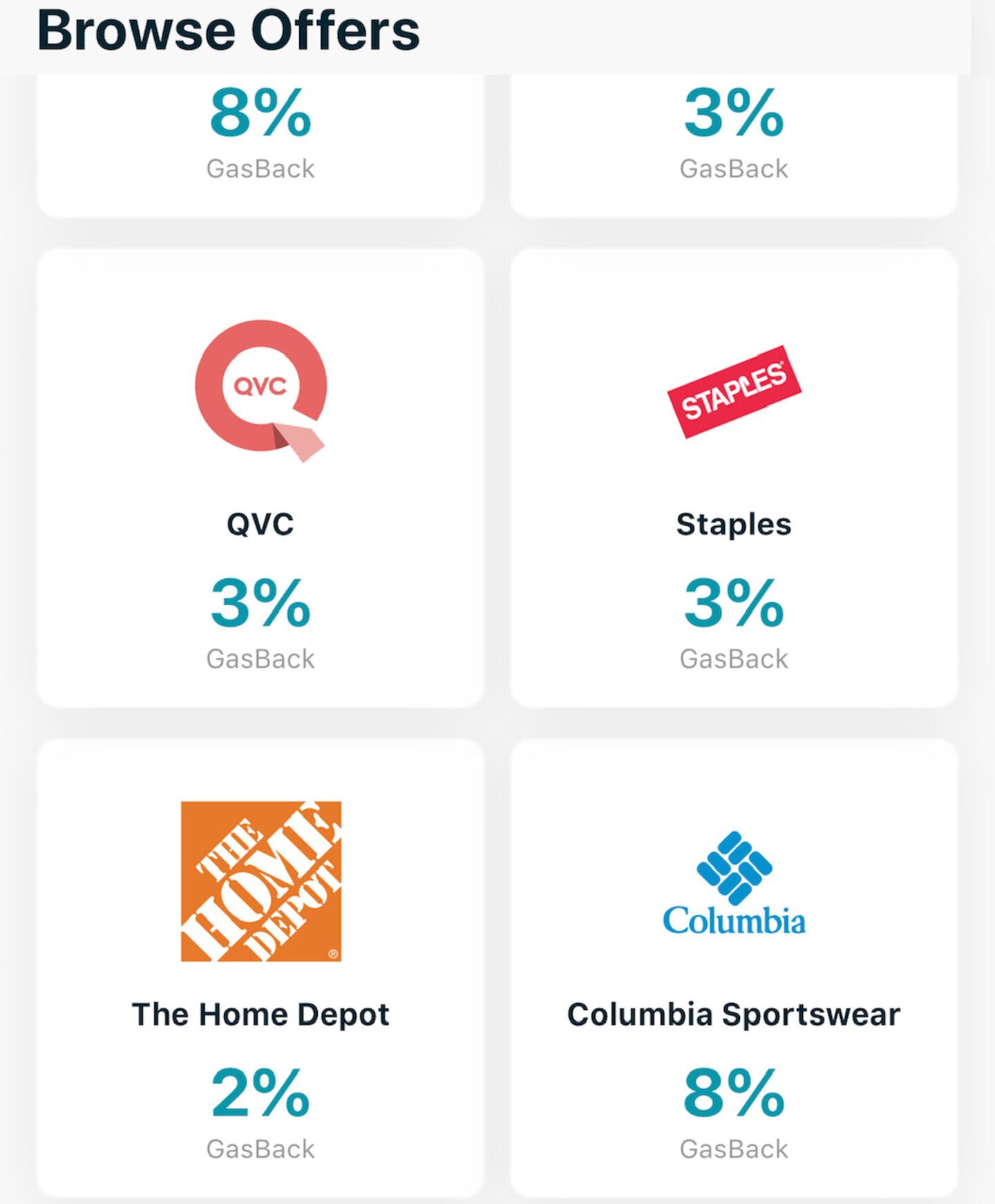 As you scroll through the stores, you’ll see displayed the percent of Gasback credit you’ll earn by shopping there. Click on the store and you’ll be taken to the merchant’s website, where you can buy items you need.