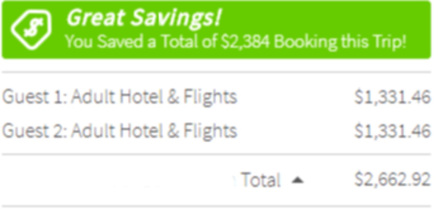Wow, $1,332! Great price, right? For two people, that’s $2,662. And that’s how it shows up on screen.