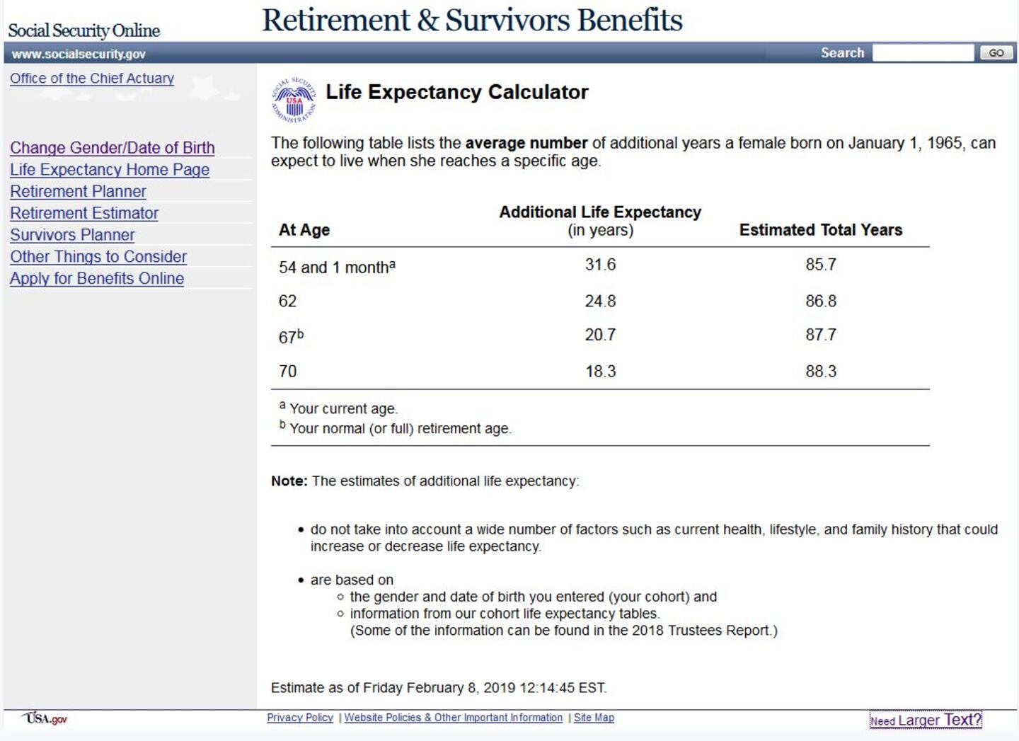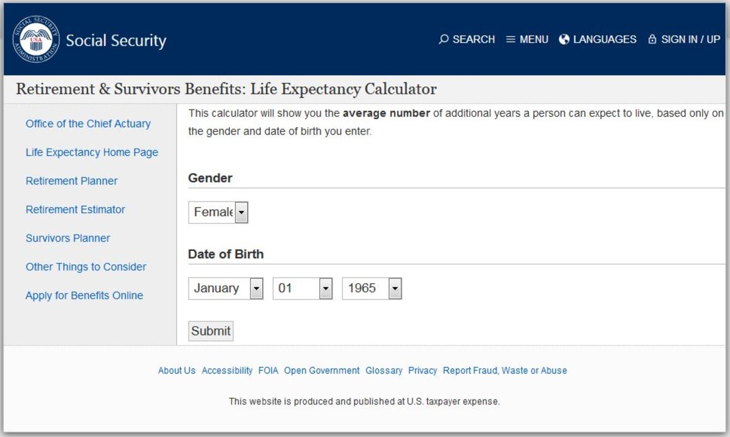 To help you understand how long you're likely to live in retirement, the SSA has a life expectancy calculator on its website: