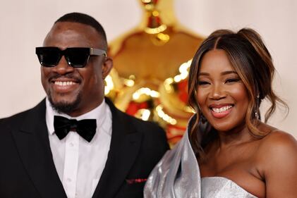 2024 Oscars: Bobi Wine and Barbie Kyagulanyi arrive for the 96th Academy Awards. (Christina House/Los Angeles Times via Getty Imag)