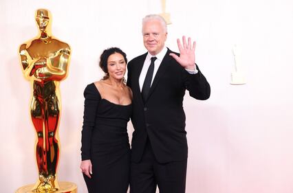 2024 Oscars: Tim Robbins and Reed Morano arrive at the 96th Academy Awards. (Christina House/Los Angeles Times via Getty Imag)