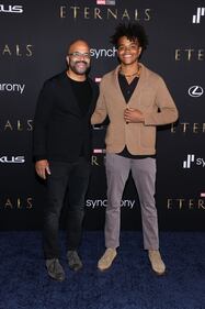 Photos: Angelina Jolie, Salma Hayek stun on 'Eternals' red carpet Jeffrey Wright and Elijah Wright attends Marvel Studios' "Eternals" premiere on October 18, 2021, in Los Angeles. (Rich Fury/Getty Images)