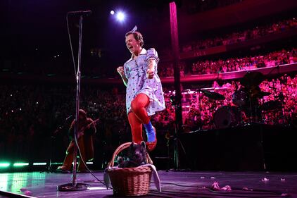 Photos: Harry Styles dresses as Dorothy from 'The Wizard of Oz' at Halloween show Harry Styles performs onstage at Harry Styles "Harryween" Fancy Dress Party at Madison Square Garden on October 30, 2021, in New York City. (Theo Wargo/Getty Images for HS)