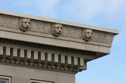 Glenn Hotel Throughout the hotel, a lion motif appears frequently, including guest room door knockers and artwork, honoring the thirty-nine carved stone lion heads adorning the building’s historic cornice. (Glenn Hotel)