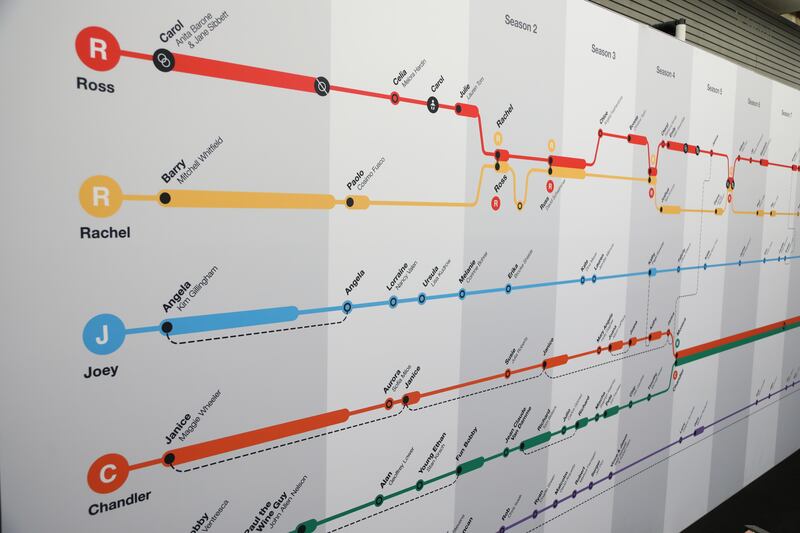 "Friends"experience in Atlanta Walking through the experience takes about an hour and includes clips from the show, set recreations, props used during the show and photos from the cast and crew. (Nelson Hicks)