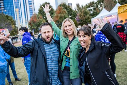 League of Legends World Championship Semifinals ATLANTA, GEORGIA - OCTOBER 28: Fans pose for a photos at the Riot Games Official Tailgate Party on October 28, 2022 in Atlanta, GA. (Photo by Colin Young-Wolff/Riot Games) (Colin Young-Wolff)