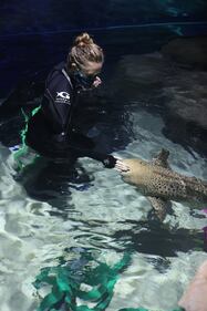 Sharks Predators of the Deep at the Georgia Aquarium “You’ll be able to put on a wet suit, you’ll be able to do a little bit of a classroom portion that talks about the natural history and conservation of some of these fascinating animals and then after that, you’ll be able to get in the water with them, meet them and possibly even touch and feed them at the same time,” the Georgia Aqarium’s Melissa Paynter, who will conduct some of the interactive programs, said. (Nelson Hicks)
