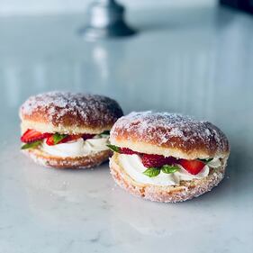 Doughnut Dollies There's the Shortcake Doughnut with Brioche, Seasonal Fresh Fruit, Vanilla Bean Cream (Doughnut Dollies)