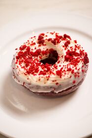 Doughnut Dollies Enjoy a Red Velvet Doughnut (Mia Yakel)