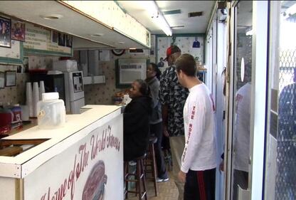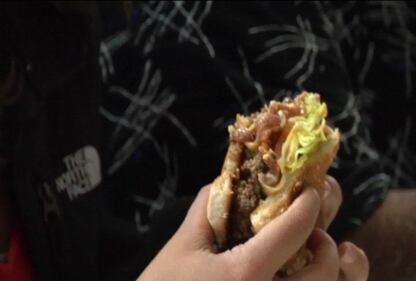 Ghetto Burger at Ann's Snack Bar The rest had to wait outside on their turn to order. (Nelson Hicks)
