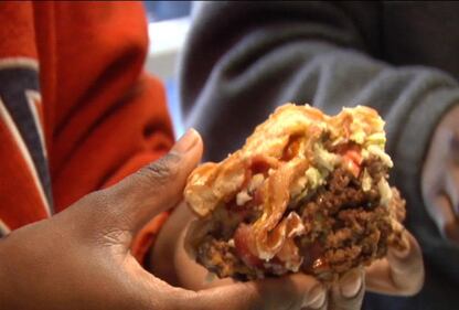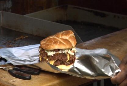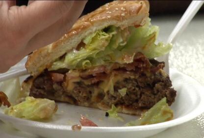 Ghetto Burger at Ann's Snack Bar "The Ghetto Burger is a double chili cheeseburger with bacon, lettuce, tomatoes, mustard, ketchup and onions," Price told WSB-TV's Nelson Hicks on a visit in 2008. (Nelson Hicks)