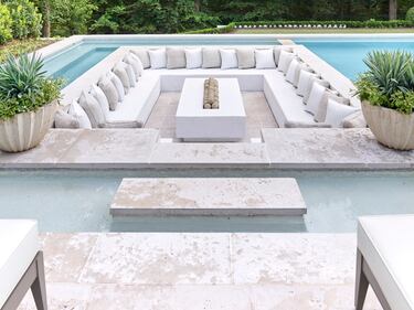2020 Southeastern Designer Showhouse at Villa Flora The private grounds include a new outdoor pool with spa, firepit and grill porch; a flat, turfed rear courtyard; an indoor lap pool; lighted tennis court; and trails punctuated by original sculpture. (David Christensen for Southeastern Designer Showhouse & Gardens)