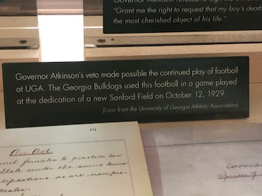 Georgia Capitol Museum Along with this football from a 1929 University of Georgia football game... (Nelson Hicks)