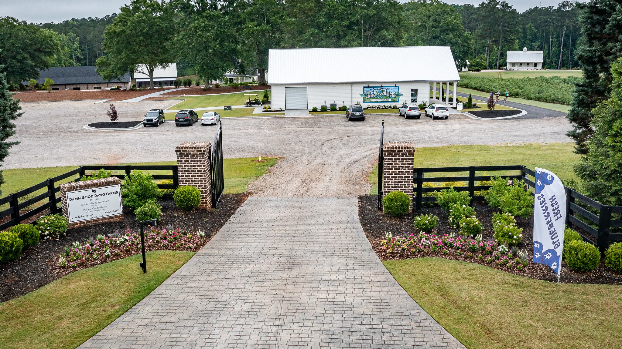 There’s also a 5,800 sq. ft. event venue, winery and a U-Pick blueberry farm. In total, there are 11 buildings on the property, including a main lodge, bride and groom house and a covered pavilion.