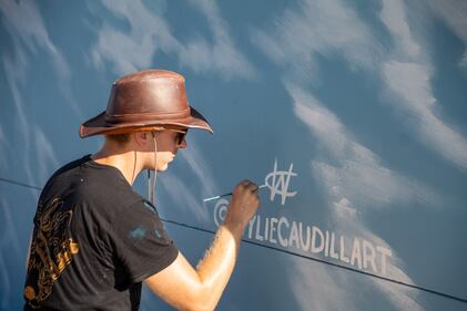 Jekyll Island’s 75th Anniversary Street Party Wylie Caudill, an interactive public mural artist based in Louisville, was tapped to create the island’s first mural art installation in Beach Village. Caudill, is the great-grandson of Tallulah “Tallu” Fish who established the Jekyll Island Museum in Indian Mound Cottage, the former home of William Rockefeller. (Jekyll Island Authority)