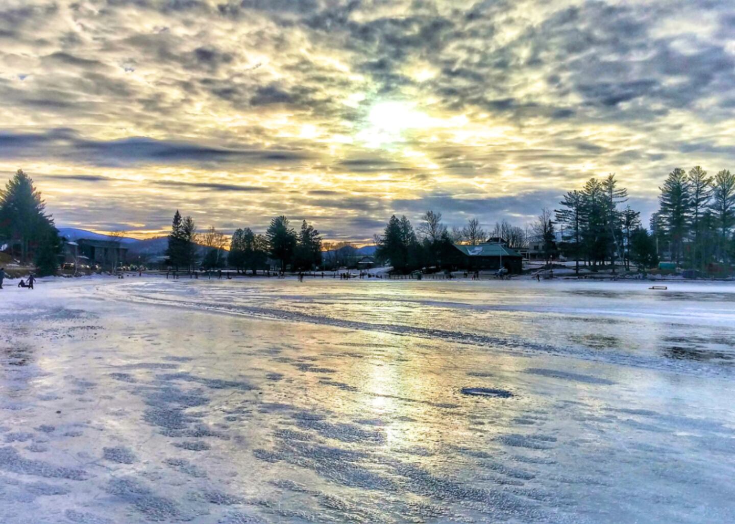 Mirror Lake's toboggan chute is a favorite. It drops participants down an icy 30-foot-tall converted ski jump trestle onto a frozen Mirror Lake. The lake is also an excellent place for ice skating. Off the ice, visitors can choose from several trails to go backcountry skiing, cross-country skiing, or snowshoeing.