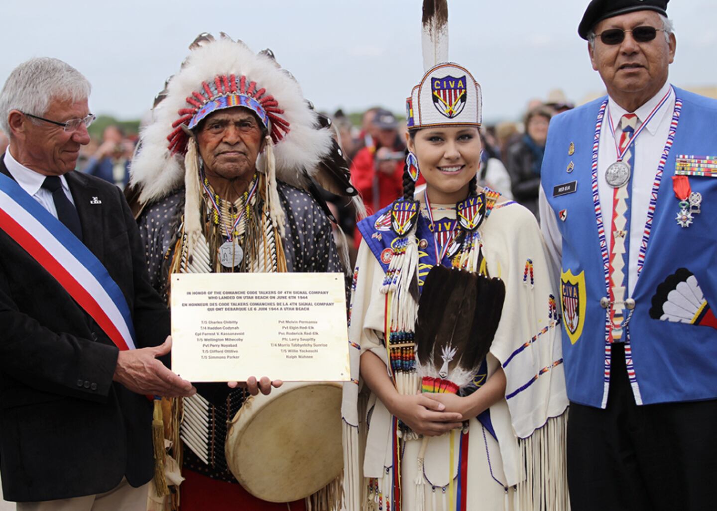 The U.S. government enlisted the service of now-famous Comanche "code-talkers" in both World War I and World War II. Using their native tribal language, they developed a secret messaging code that proved unbreakable for the Germans. Thirteen of these code-talkers were among the Allied soldiers who landed at Normandy.