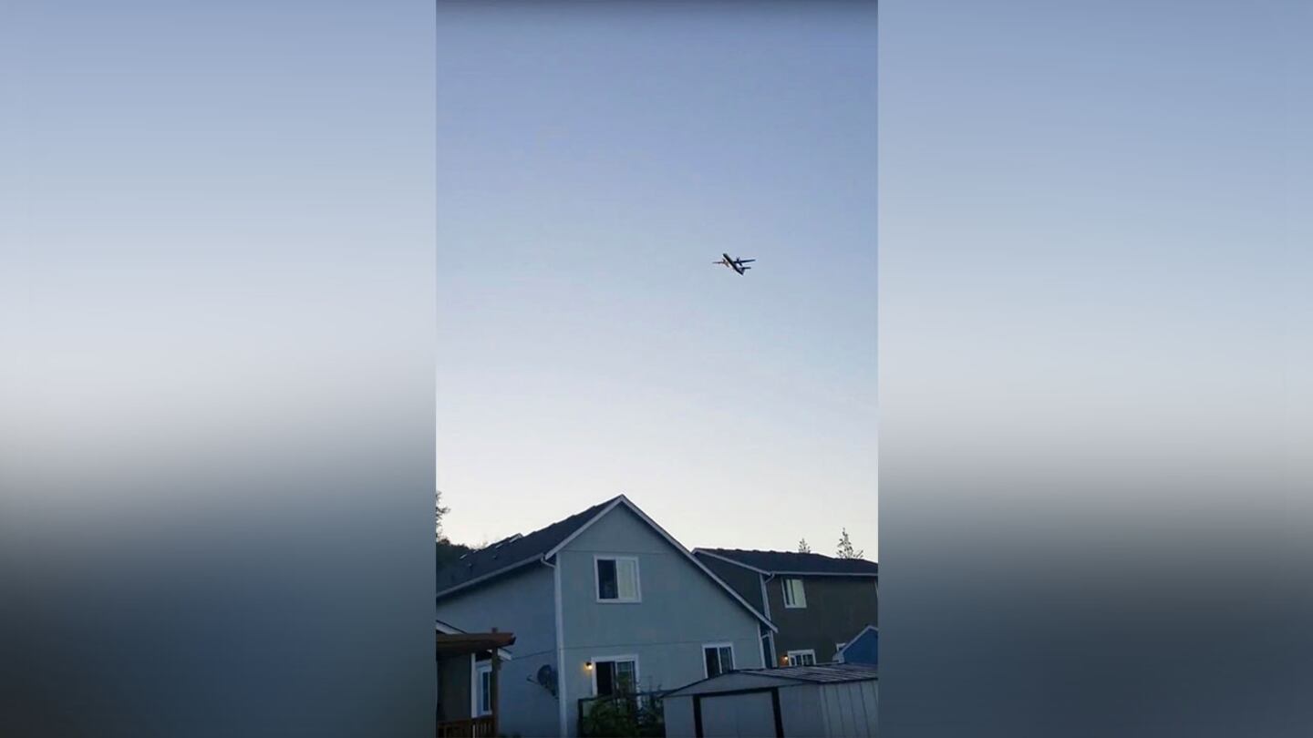 UPDATE: 12:57 a.m. EDT Aug. 11:  Video from a witness shows the Bombardier Q400 passenger plane veering through the sky near Puget Sound near Seattle :