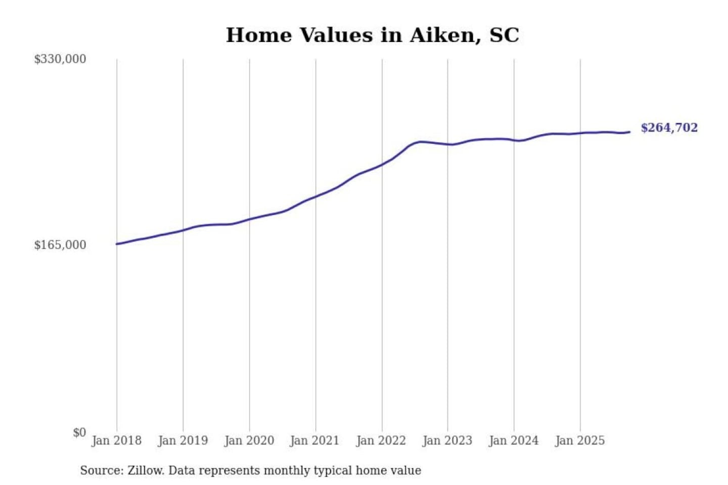 Stacker compiled a list of cities with the most expensive homes in the Augusta-Richmond County, GA-SC metro area using data from Zillow. Charts show the monthly typical home value since January 2018.