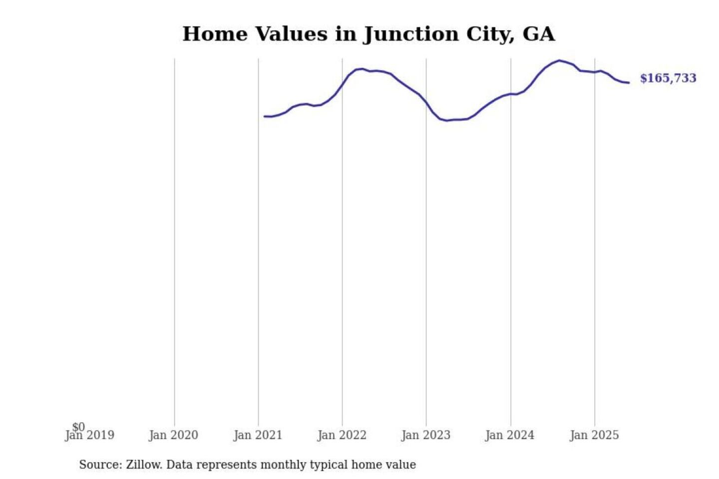 Stacker compiled a list of cities with the most expensive homes in the Columbus, Georgia metro area using data from Zillow. Charts show the monthly typical home value since January 2018. All 23 cities and towns with data available were included in the list.