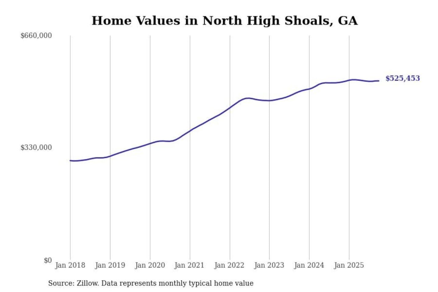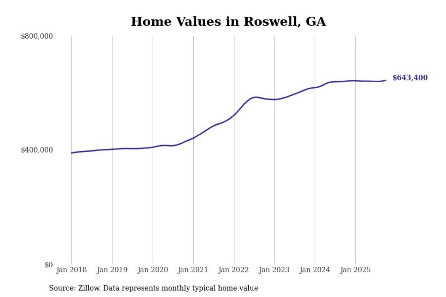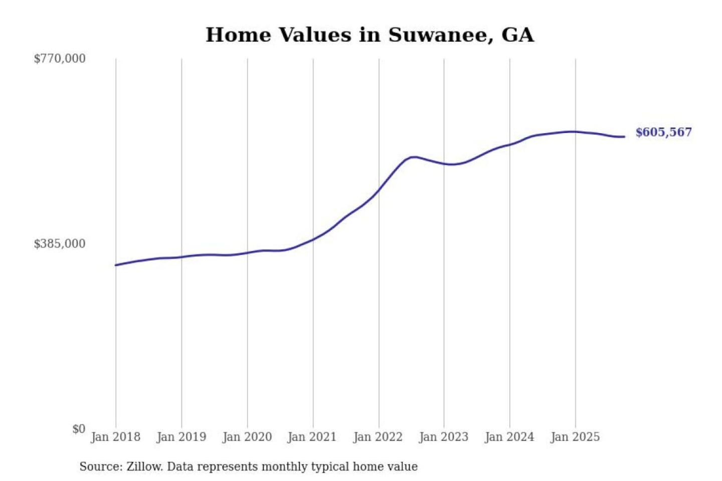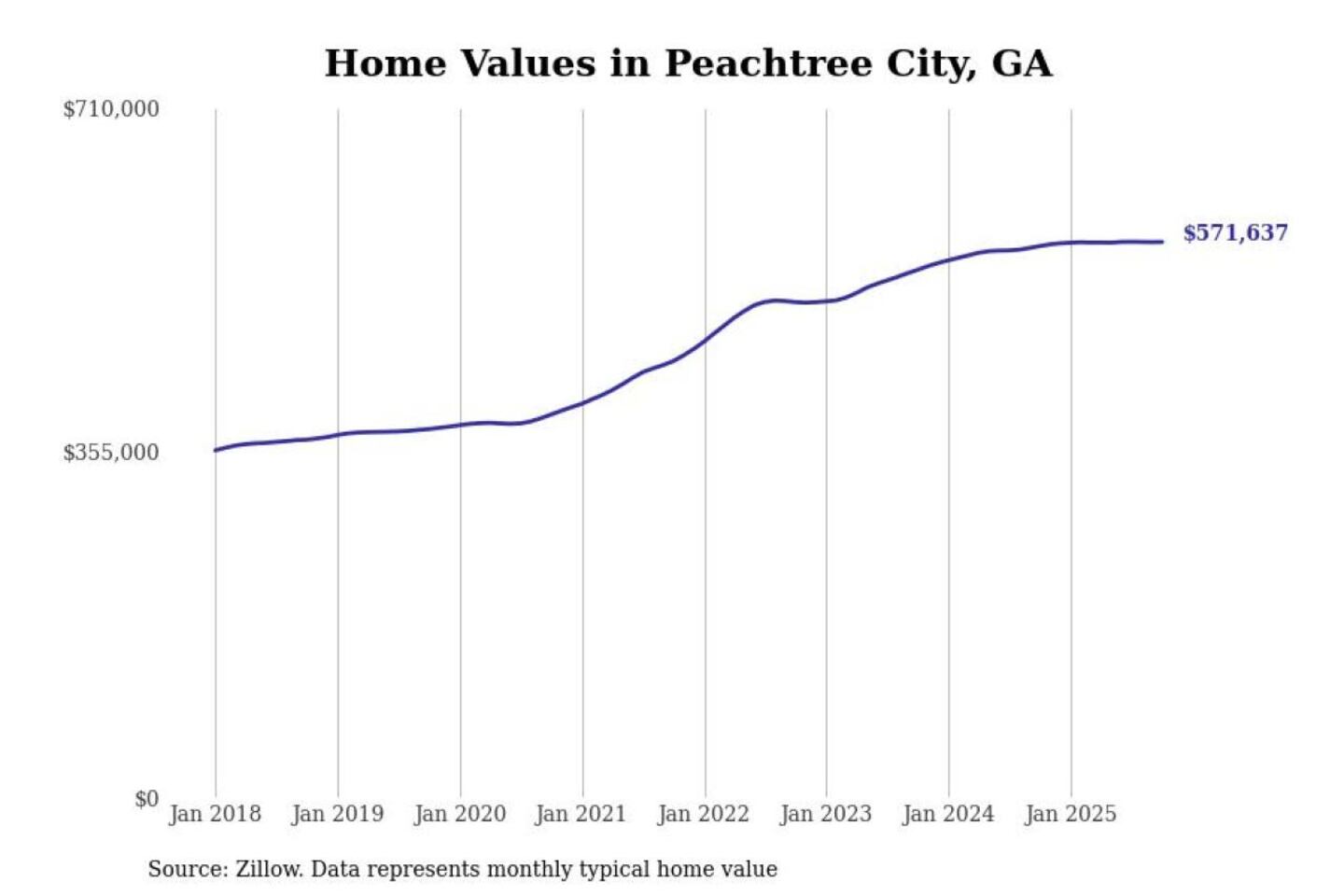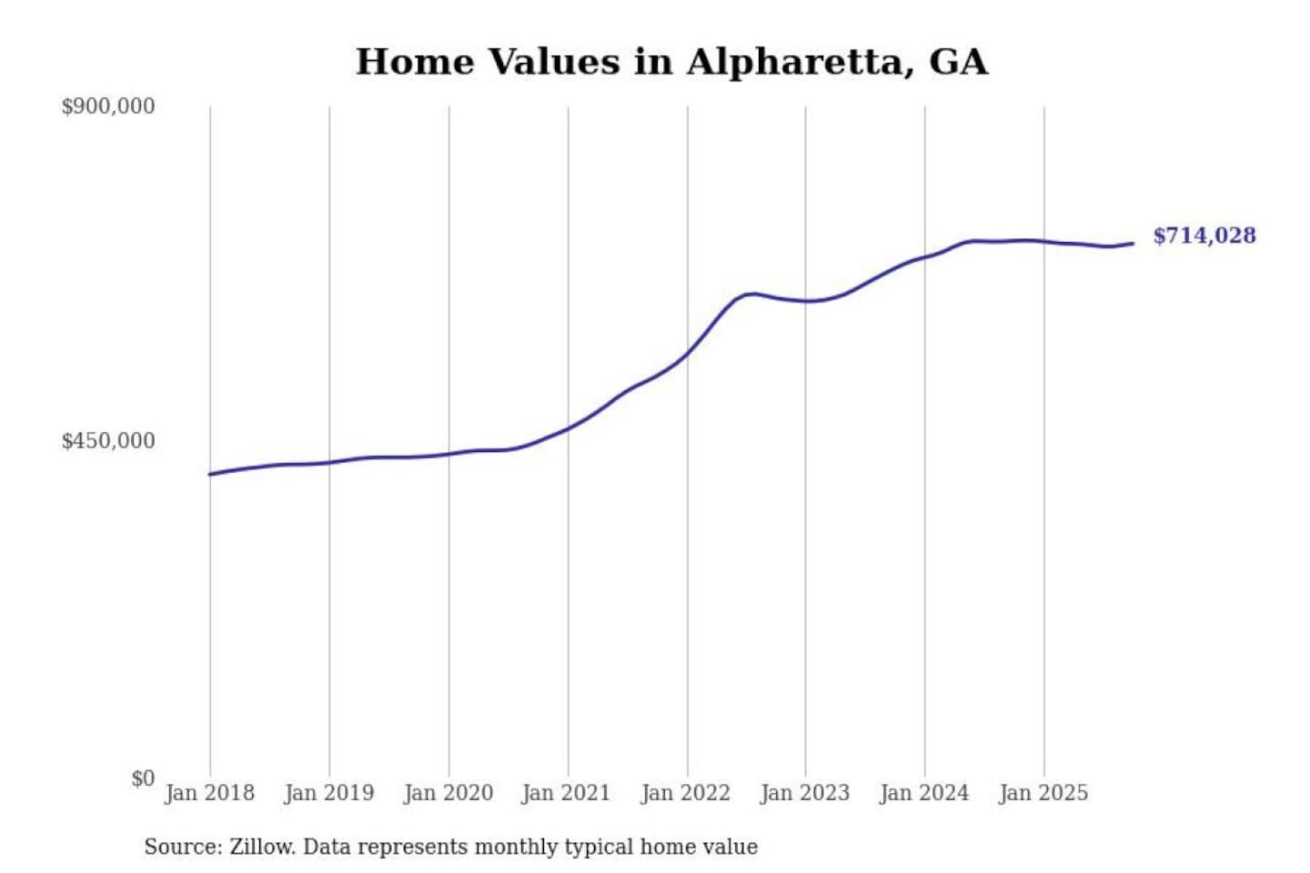 Stacker compiled a list of cities with the most expensive homes in Georgia using data from Zillow. Cities are ranked by the Zillow Home Values Index for all homes as of October 2025. The charts in this story were created automatically using Matplotlib.