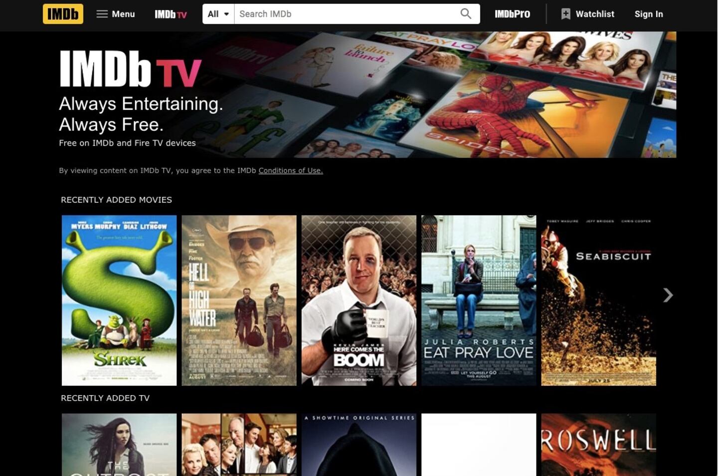 When I visited IMDb TV, I found several popular titles in the "Recently Added" section including "Shrek," "Eat Pray Love" and "Seabiscuit." Other popular titles included "The Sisterhood of the Traveling Pants," "Life of Pi" and "3rd Rock From the Sun." In addition to hit TV shows and top Hollywood releases, you'll also find IMDb TV originals and a whole section of "Hidden Gems."