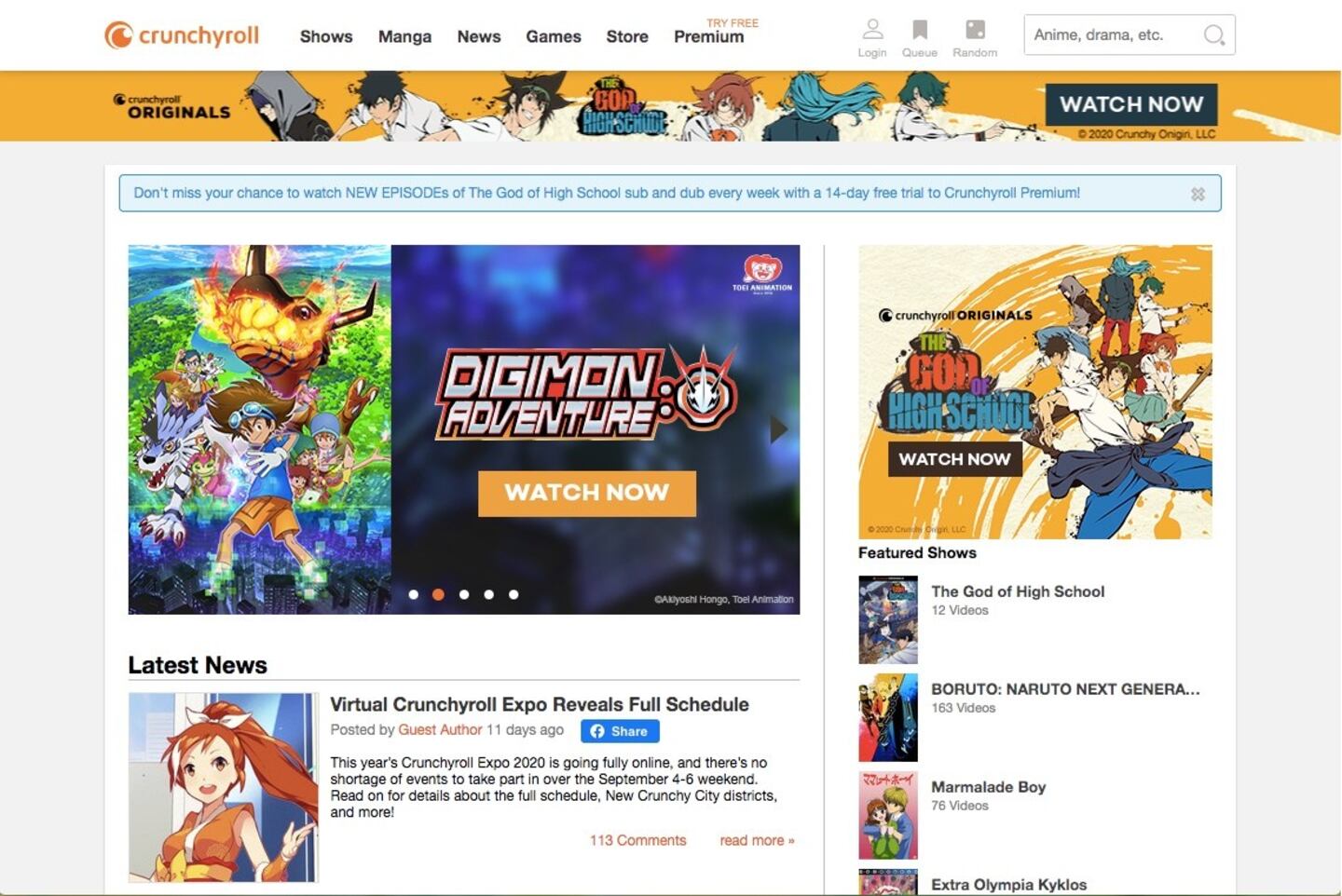 While you don't need to create an account in order to stream content via Crunchyroll, you will see advertisements prompting you to pay for a premium membership. The membership lets you watch unlimited ad-free shows, get access to new episodes an hour after they premiere and download shows for offline viewing. Still, you can stream online for free (with ads). Just note that the newest episodes may not be available immediately.