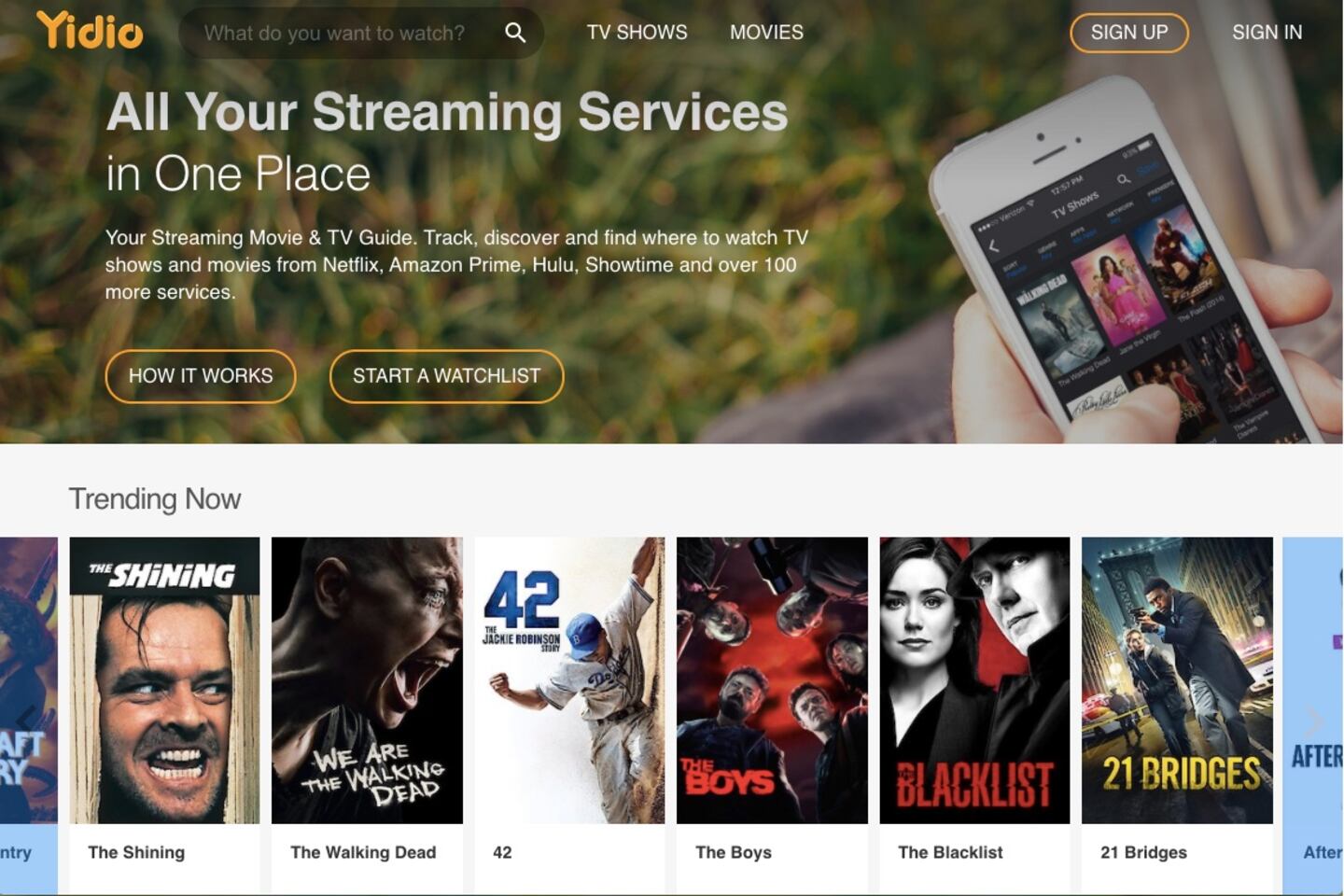 Unlike the other websites on this list, Yidio is a video aggregator that compiles links to videos and TV shows available on other streaming services.