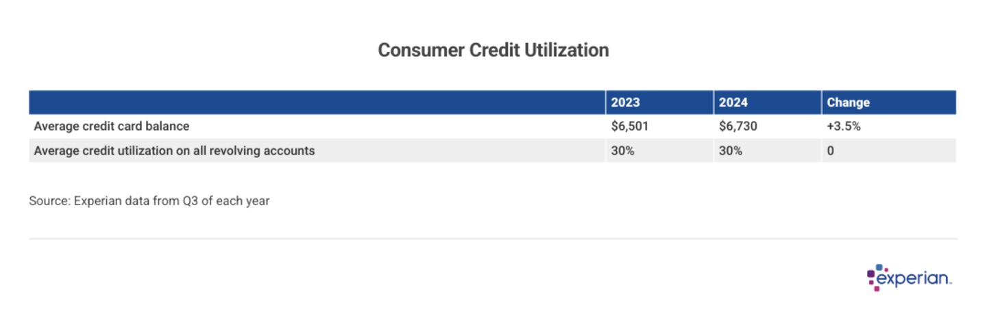 Credit utilization, which measures credit usage on revolving accounts, including credit cards, HELOCs and other credit lines, remained steady at 30% in 2024, as some consumers managed increased interest rates by slowing their credit card spending.
