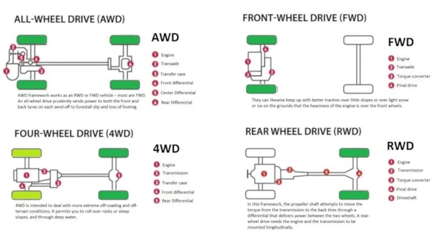 On the other hand, four-wheel-drive vehicles feature selectable drive types, allowing drivers to alternate between several drive modes. Most four-wheel-drive vehicles feature transfer cases actuated manually via an interior switch or lever. Basic four-wheel-drive applications typically feature three modes—two-wheel-drive, four-wheel-drive (high), and four-wheel-drive (low). In some applications, four-wheel-drive vehicles may also feature a fourth automatic mode, which utilizes computer controls to automatically alternate between two-wheel-drive and four-wheel-drive, depending on road conditions.