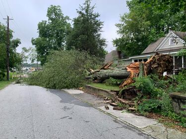 Tree down in Smyrna Old oak just fell at 3125 Lee St SE Smyrna, GA. Family was home but made it out safely. The home was built in 1910. (Rene Rutledge)
