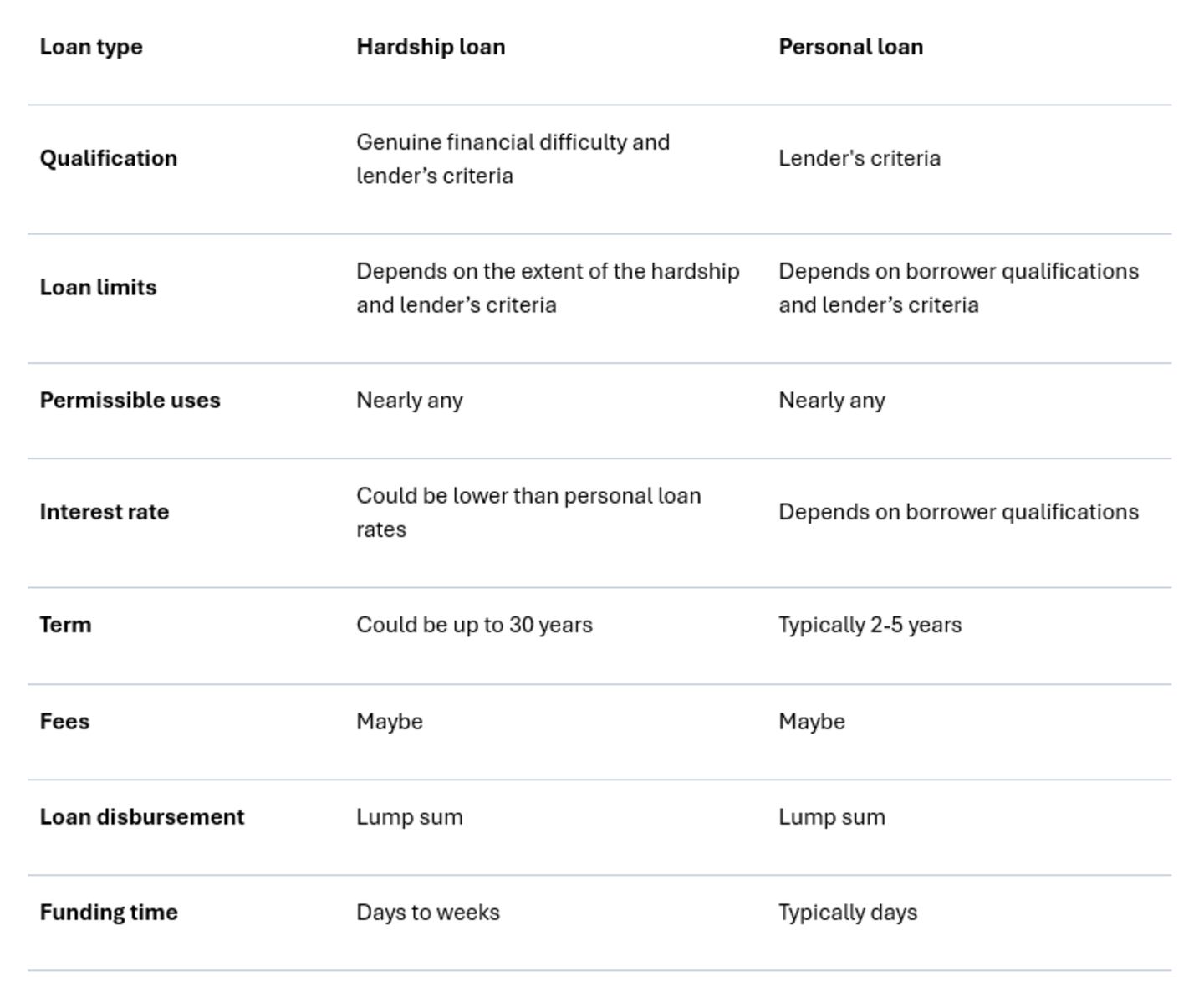 - Many hardship loans don't require collateral. Not having to come up with (or risk) collateral could simplify the loan process.