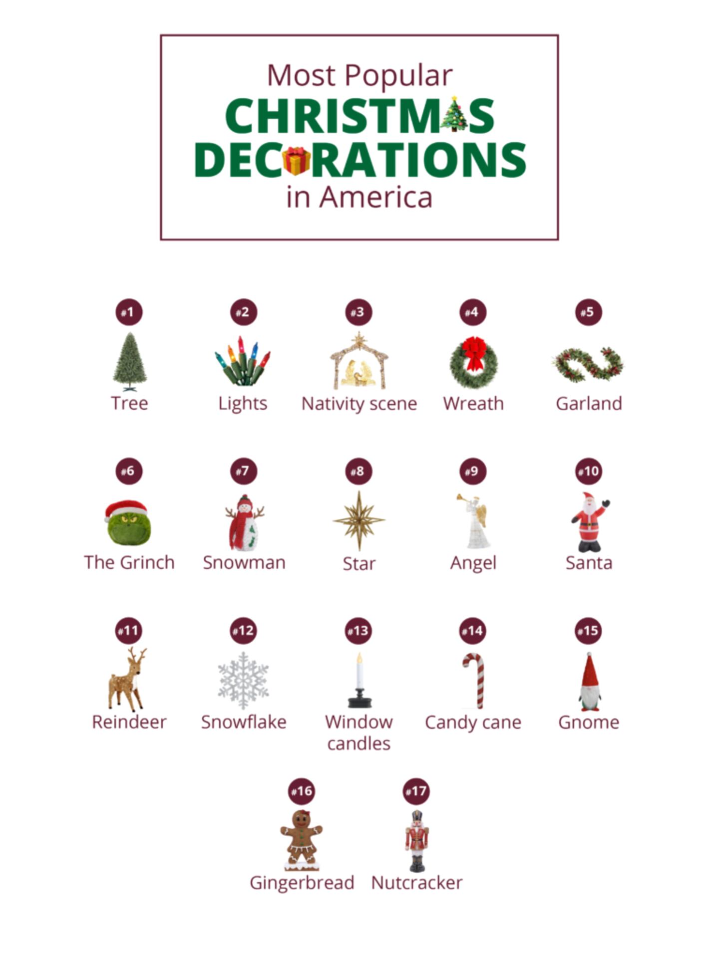 The top three decorations in the nation were, lights, tree, and the nativity.