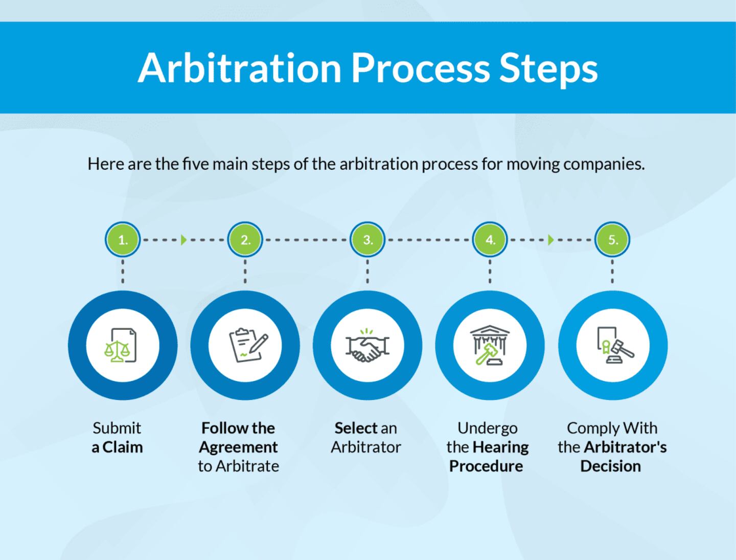 Here are the five main steps of the arbitration process for moving companies.