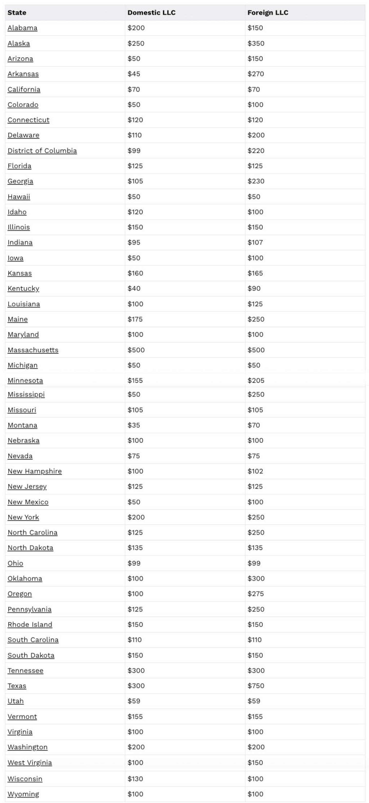 You can get an idea of the minimum formation cost by looking up your state's LLC filing fee. In most places, you'll find this information through your Secretary of State's (SOS) website.