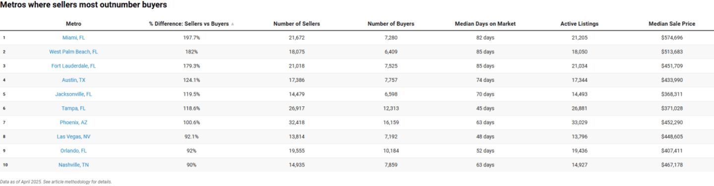 Sellers outnumber buyers by the most in these 10 metros, giving buyers more leverage.