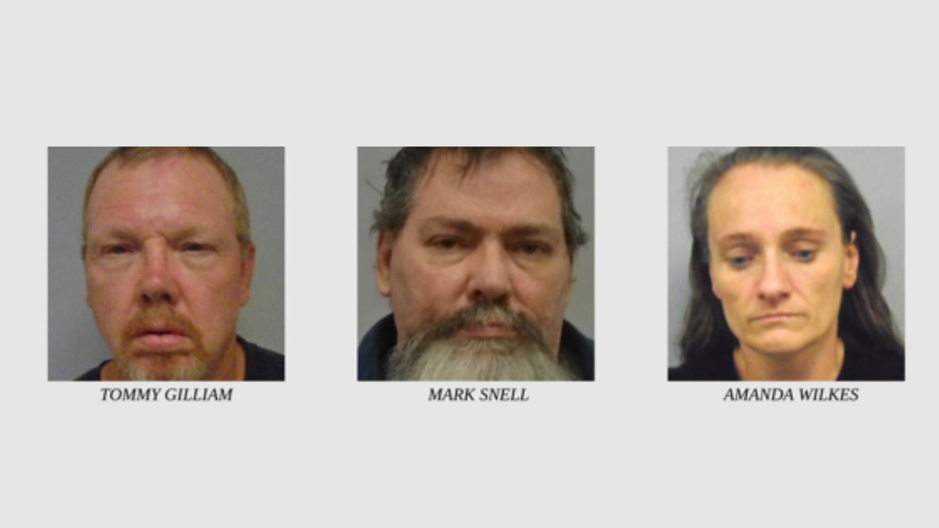 Tommy Lynn Gilliam, 55, and Amanda Charlene Wilkes, 43, were arrested at the home. Investigators also identified and arrested Mark Aaron Snell, 55, due to his involvement in the case.
