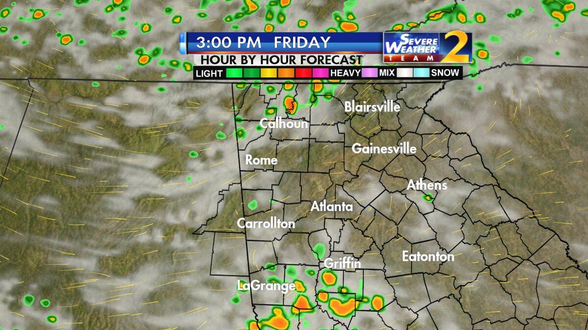 ATLANTA — Showers and thunderstorms started to develop Friday afternoon across metro Atlanta, and more rain could be on the way.