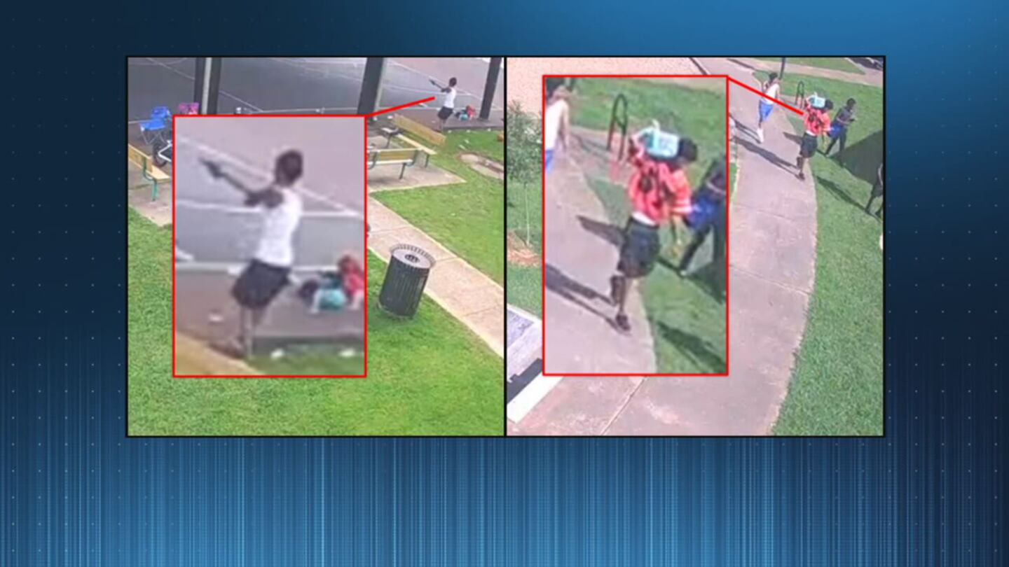 In one video, the suspects can be seen appearing to open fire near a ball field as an adult grabs a child and gets out of the apparent line of fire.