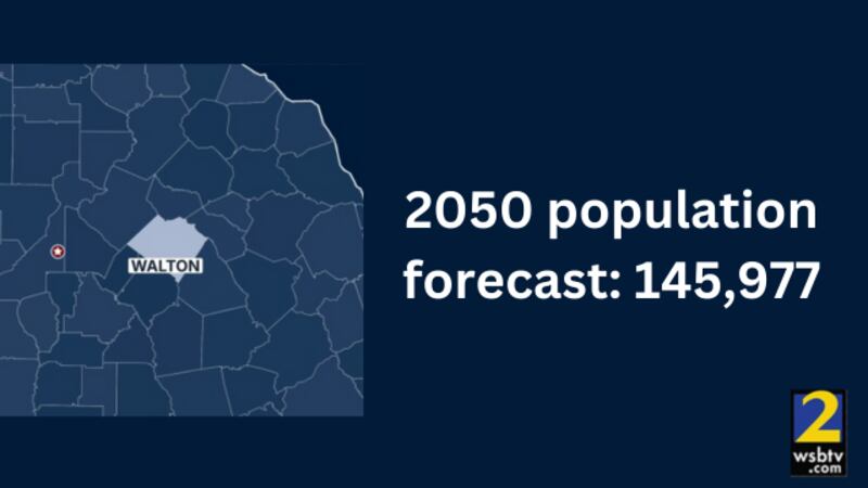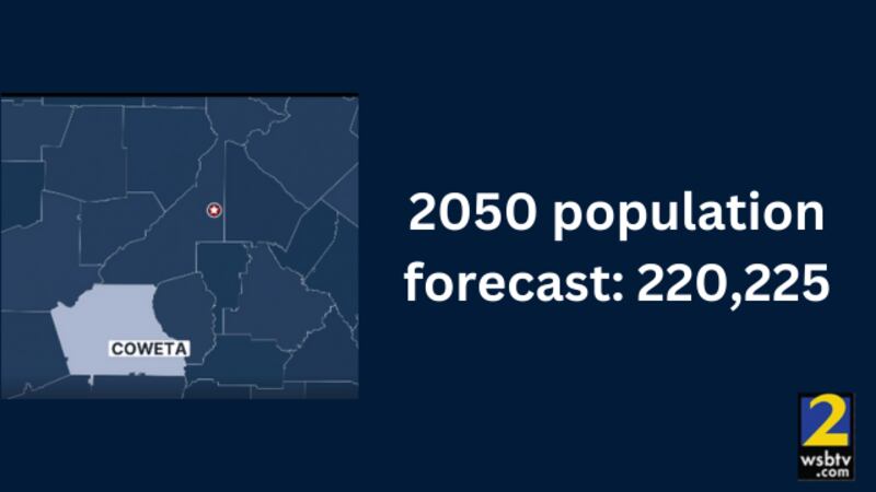 - Coweta County (51% growth to 220,225 by 2050) tied with Walton County (51% growth to 145,977 by 2050)