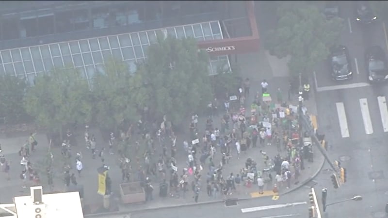 ATLANTA — Dozens of people gathered at the Georgia Capitol Building on Saturday afternoon to continue protesting for the right to an abortion.