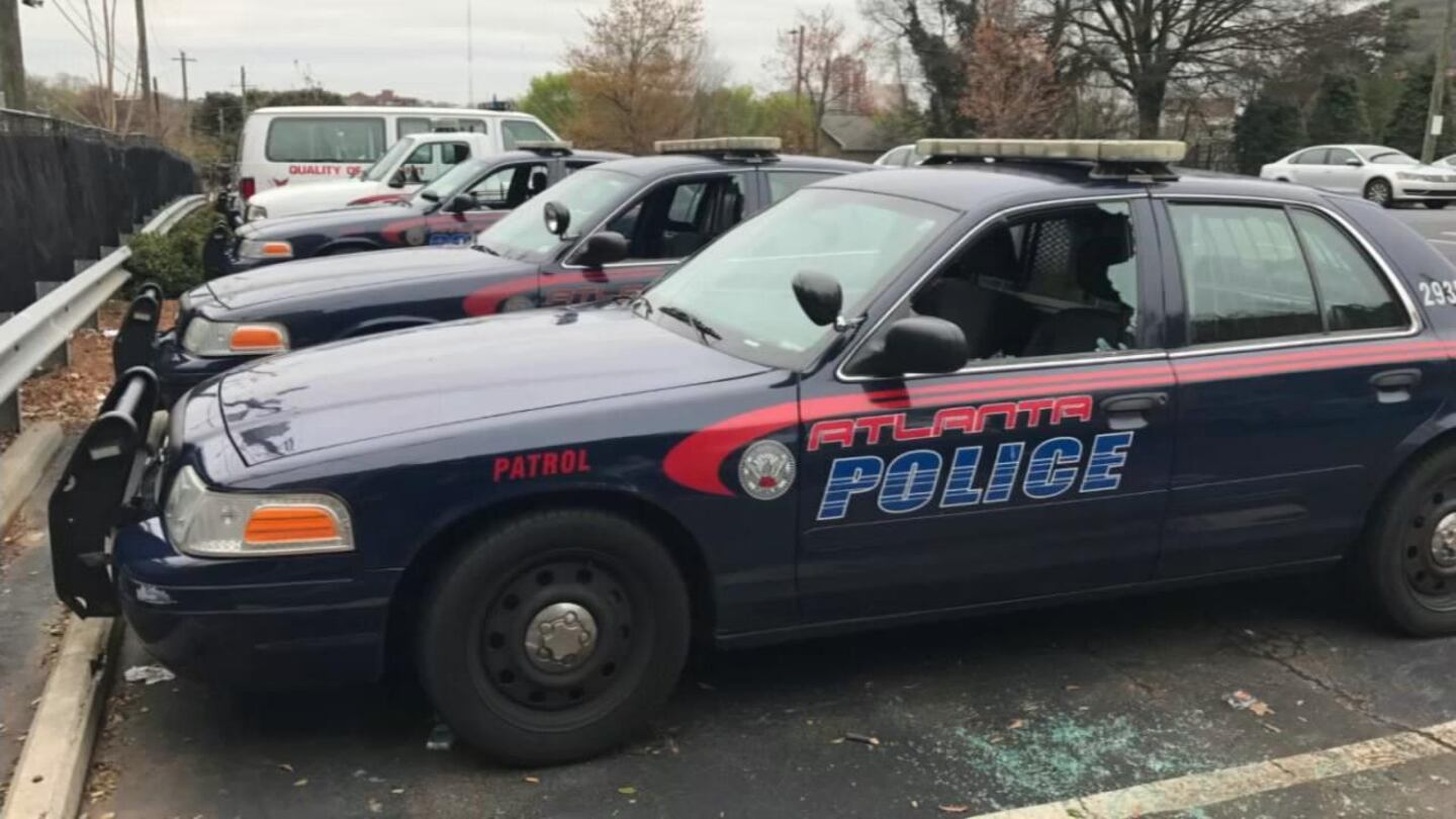 ATLANTA — Atlanta police arrested a man early Monday for breaking windows on seven patrol cars and a police van outside the Atlanta Police Department mini-precinct near Peachtree and Pine streets.