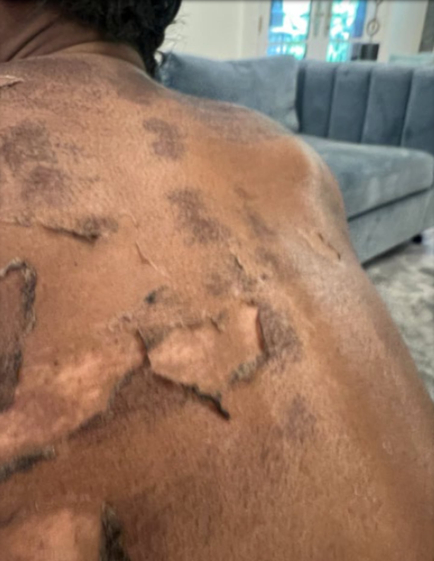 A picture of what appears to be the damage done to Morton’s back from the chemical peel is included in the court document.