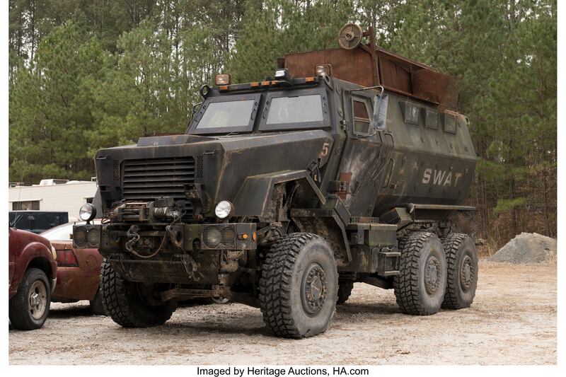 Walking Dead auction Each item is a portal into the show's history — a chronicle of its survivalist spirit and emotional stakes. The collection includes signature props, weapons and garments that came to symbolize key character arcs from Dale's iconic Winnebago from the original series and Al's CAT-2 MRAP from Fear the Walking Dead to the Governor's chilling Season 4 ensemble and Michonne's katana from Season 3. (Brocke Lyons/HA.com)