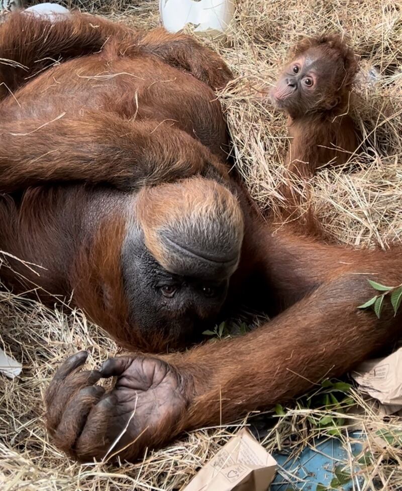 “It is vital that infant orangutans be reared by other orangutans, as they learn everything they know from their mothers. In the wild, these skills include knowledge of climbing safety, appropriate predator avoidance behaviors, the ability to identify and remember the locations of fruiting trees, and the ability to discern the appropriateness of certain fruits and other foods,” zoo officials said.