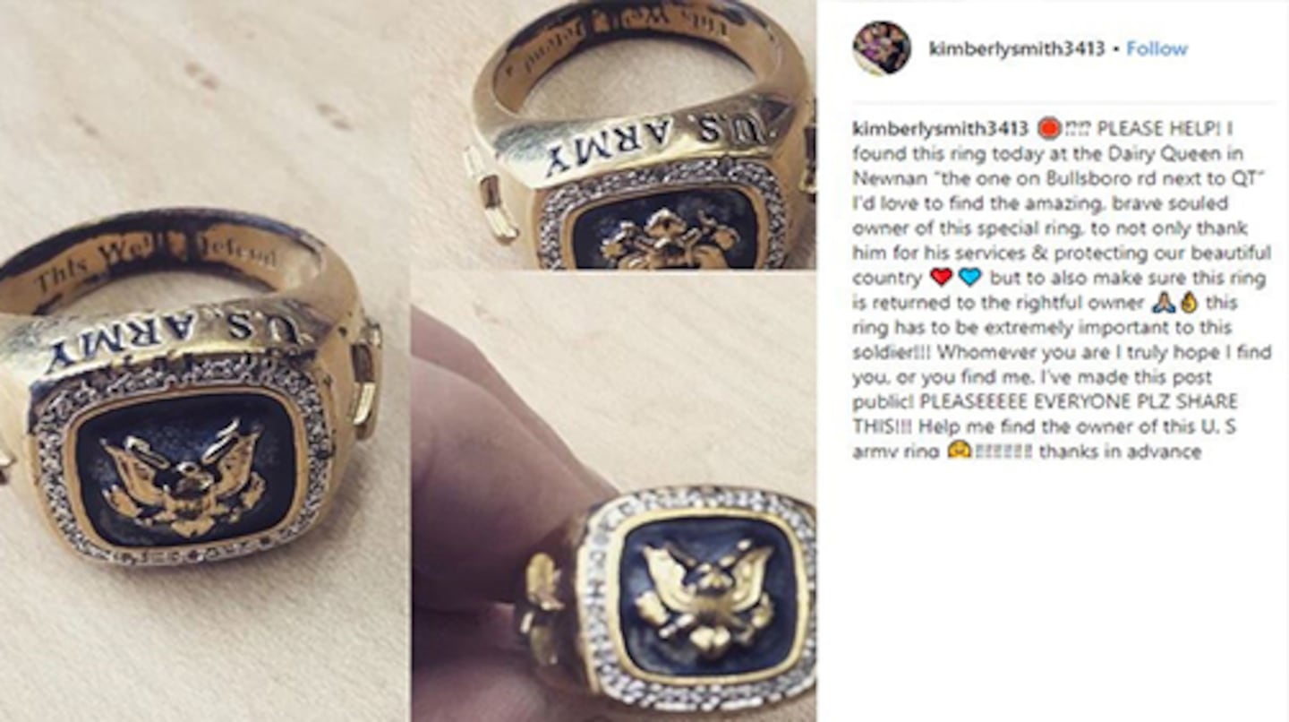 In an Instagram post, Smith said, "I’d love to find the amazing, brave souled owner of this special ring, to not only thank him for his services and protecting our beautiful country."